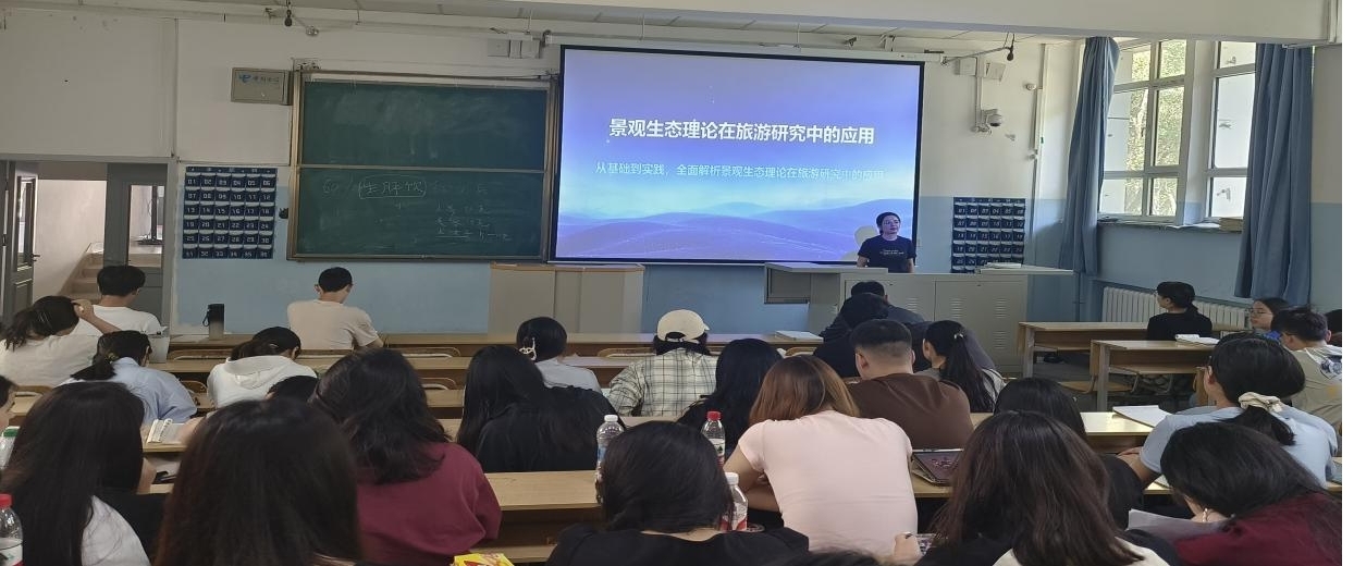 祖拜代教授首先对景观生态理论做了详细阐述,并强调景观、景观格局等在人类与自然两大系统中发挥的重要作用,其次,将自身面对科学研究时的一些想法与思路分享给在座学生,给初面临科研的学生提供思考与借鉴。之后进入到今天的讲座主题《景观生态理论在旅游研究中的应用》。